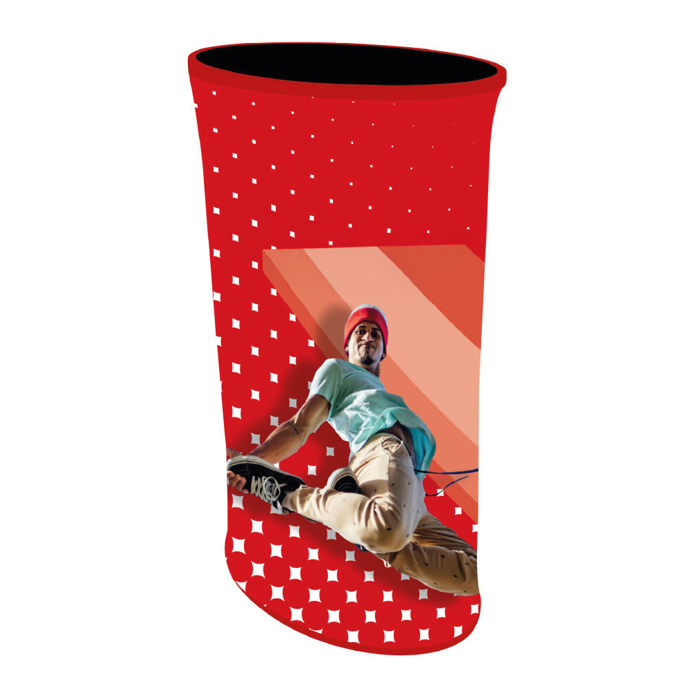 Die Messetheke ZIPP ist eine ovale, portable Theke, die sich ideal für Messen, Ausstellungen und Promotion-Events eignet. Dank ihrer leichten Aluminiumrohre mit Klicksystem lässt sie sich mühelos und ohne Werkzeug von einer Person aufbauen. Der hochwertige, umlaufende Stoffdruck, der straff am Gestell anliegt, sorgt für eine ansprechende Präsentation Ihrer Werbebotschaft. Die schwarze, lackierte Holzplatte bietet eine stabile Ablagefläche für Ihre Materialien. Mit ihrer kompakten Größe und dem einfachen Transport in der mitgelieferten Tragetasche ist die Messetheke ZIPP der perfekte Begleiter für Ihren nächsten Auftritt.
