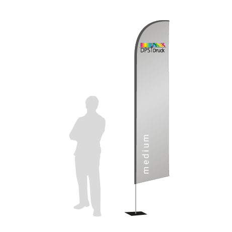 Die Beachflag Wind Medium von DPS Druck Brauneis in Pfarrkirchen, München und Niederbayern ist in ihrer Form besonders witterungsbeständig und daher auch für windigere Bereiche hervorragend geeignet. Somit ist sie die ideale Flagge für Außenbereiche, aber auch in Innenbereichen zieht sie die Blicke der Passanten auf sich. Deshalb kann sie optimal als Wegweiser oder zur Kommunikation von Botschaften genutzt werden, beispielsweise auf Messen und Events, bei Produktvorstellungen oder Geschäftseröffnungen. Aber auch als dauerhafter Werbeträger vor Autowerkstätten, an Ständen in der Fußgängerzone oder als Außenwerbung vor dem Einzelhandel ist sie dank ihrer Stabilität bestens geeignet.