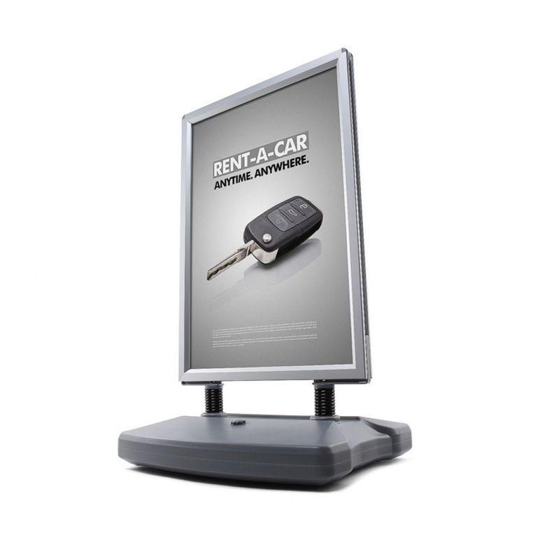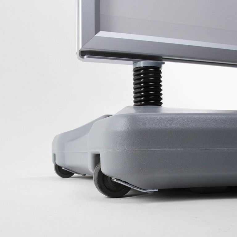 Speziell für Ihre Werbung in windigen Bereichen ist der Kundenstopper WINDTALKER® von DPS Druck Brauneis in Pfarrkirchen, München und Niederbayern die optimale Lösung. Sein mit Wasser oder Sand befüllbarer Standfuß bietet in Verbindung mit den Spezialfedern aus Stahl eine hohe Standfestigkeit. Für den einfachen Transport sind im Standfuß Rollen integriert. So können Sie den Kundenstopper trotz des Standgewichtes einfach bewegen. Der Aluminium-Schnellwechselrahmen kann doppelseitig mit Plakaten bestückt werden und garantiert Ihnen auch bei hohen Windstärken eine auffällige Werbemöglichkeit.
