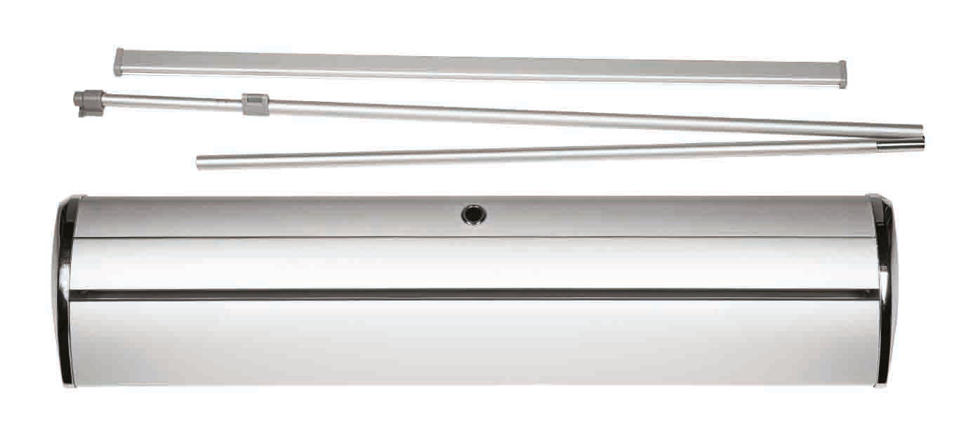 Mit dem Roll-Up Banner von DPS Druck Brauneis in Pfarrkirchen, München und Niederbayern erhalten Sie ein Banner aus der Standard-Reihe. Dieser ist Silber eloxiert und kommt mit einer Klemmschiene sowie verchromte Endkappen daher. Die beiden verchromten Endkappen stechen bei diesem System besonders hervor und verleihen Ihnen einen exclusiven Auftritt. Auch für Messen, Events, Ausstellungen, Werbeaktionen und Ähnliches eignet der Roll-Up Banner sich ideal, denn er kann einfach und bequem in der mitgelieferten Transporttasche transportiert werden.