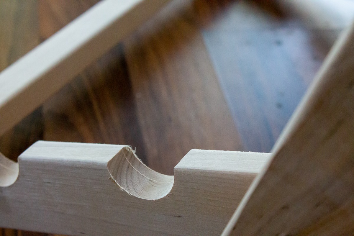 - Gestell: naturbelassenes Holz